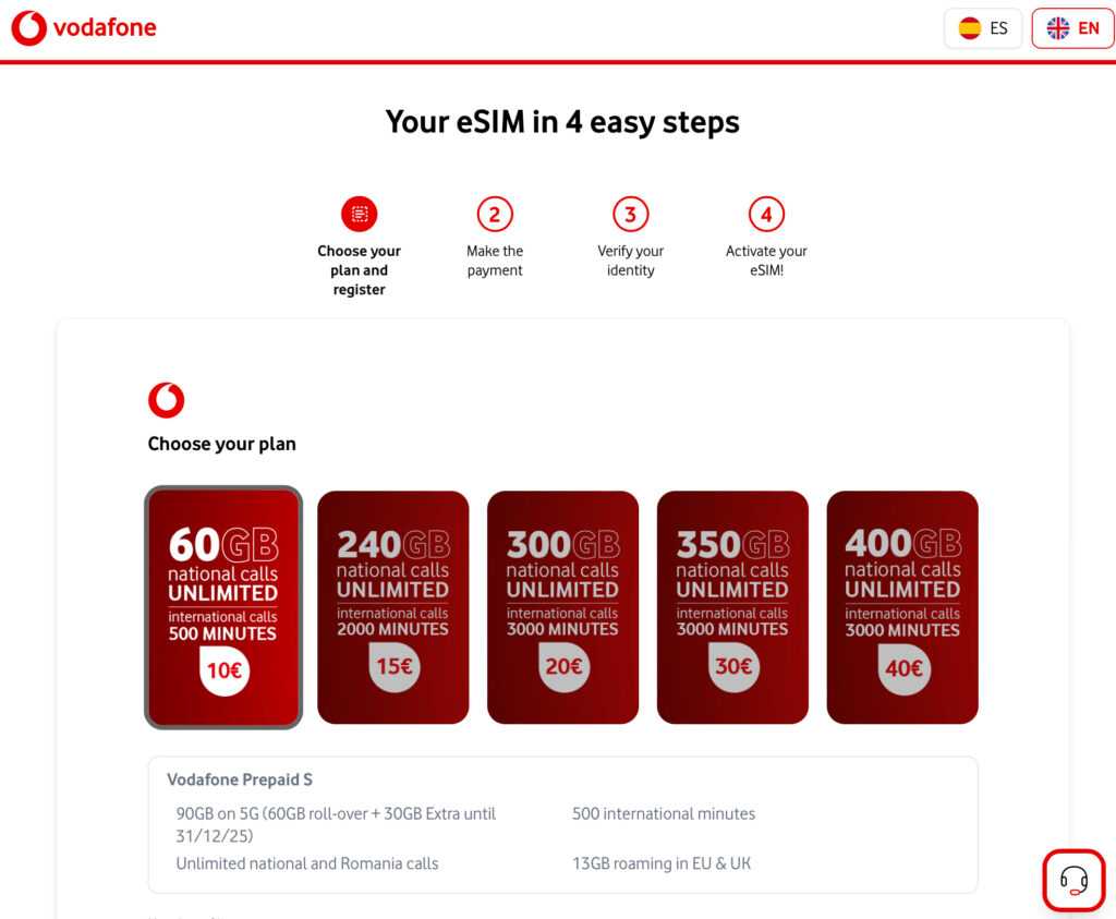 Aralık 2025 Güncelleme: Bu hattı artık eSim olarak olarak online’dan alabilirsiniz. Mağazadan fiziksel sim kart almanıza gerek yok. Bu siteden hemde İngilizce olarak formu doldurup, 10 euro ödemenizi yapıp hemen kullanmaya başlayabilirsiniz: https://esimprepago.vodafone.es/prepago-s