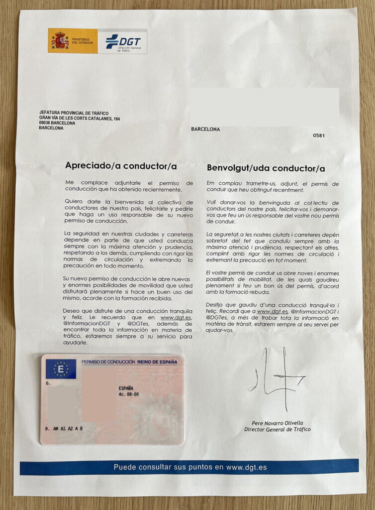 İspanya Barcelona DGT ofisinden gelen İspanya Fiziki ehliyet postası ve içinden çıkanlar bu şekilde: