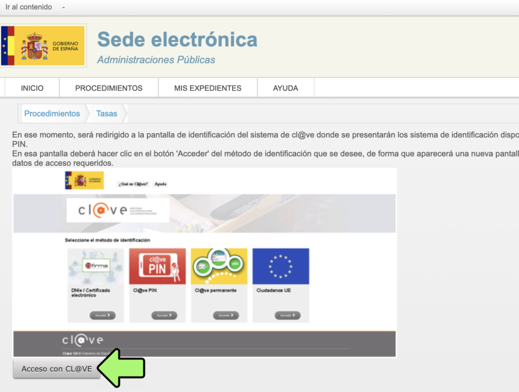 Bir sonraki sayfa bu şekilde açılacak. Bu sayfada Clave ya da dijital sertifika ile giriş yapmanız isteniyor. Online ödeme yapmak için bunlardan birini almış olmanız gerekiyor.