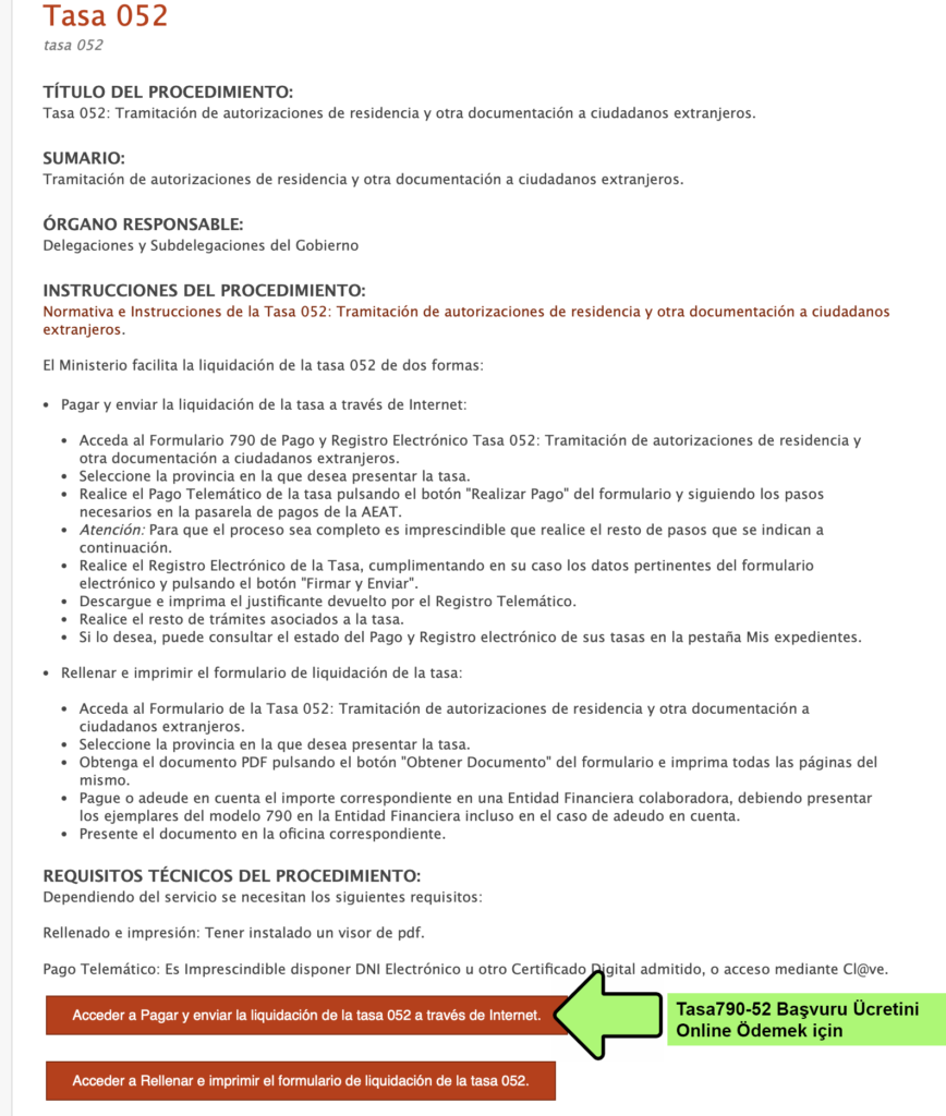 Tasa-790 ya da Tasa-052 diye geçen bu başvuru harcını başvuru yapmadan önce ödemeniz gerekmektedir. Ödeme dekontunu başvuru sırasında PDF olarak yüklemeniz gerekiyor.